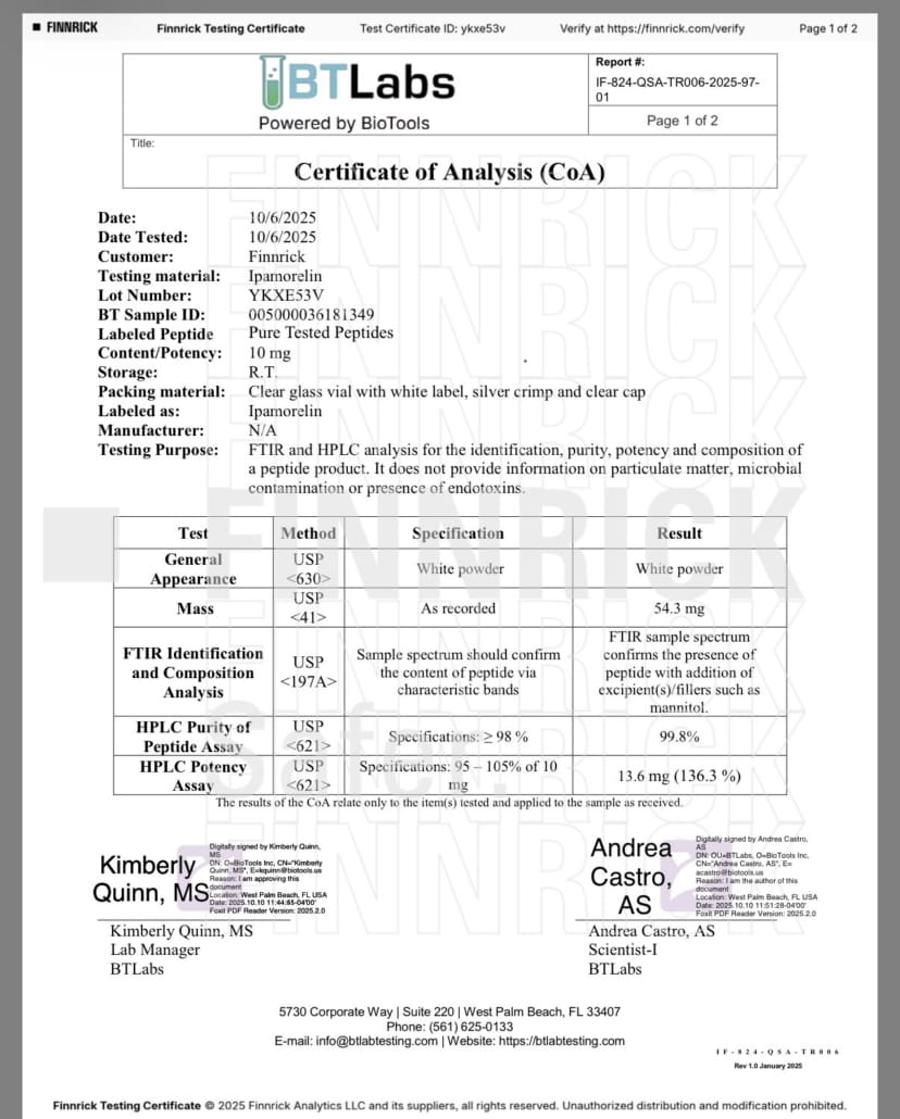Ipamorelin (Oct Batch Testing)