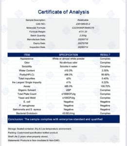 • Conformation: These modifications maintain the peptide’s affinity for the GLP-1R, GIPR, and GCGR while prolonging systemic exposure and reducing clearance.